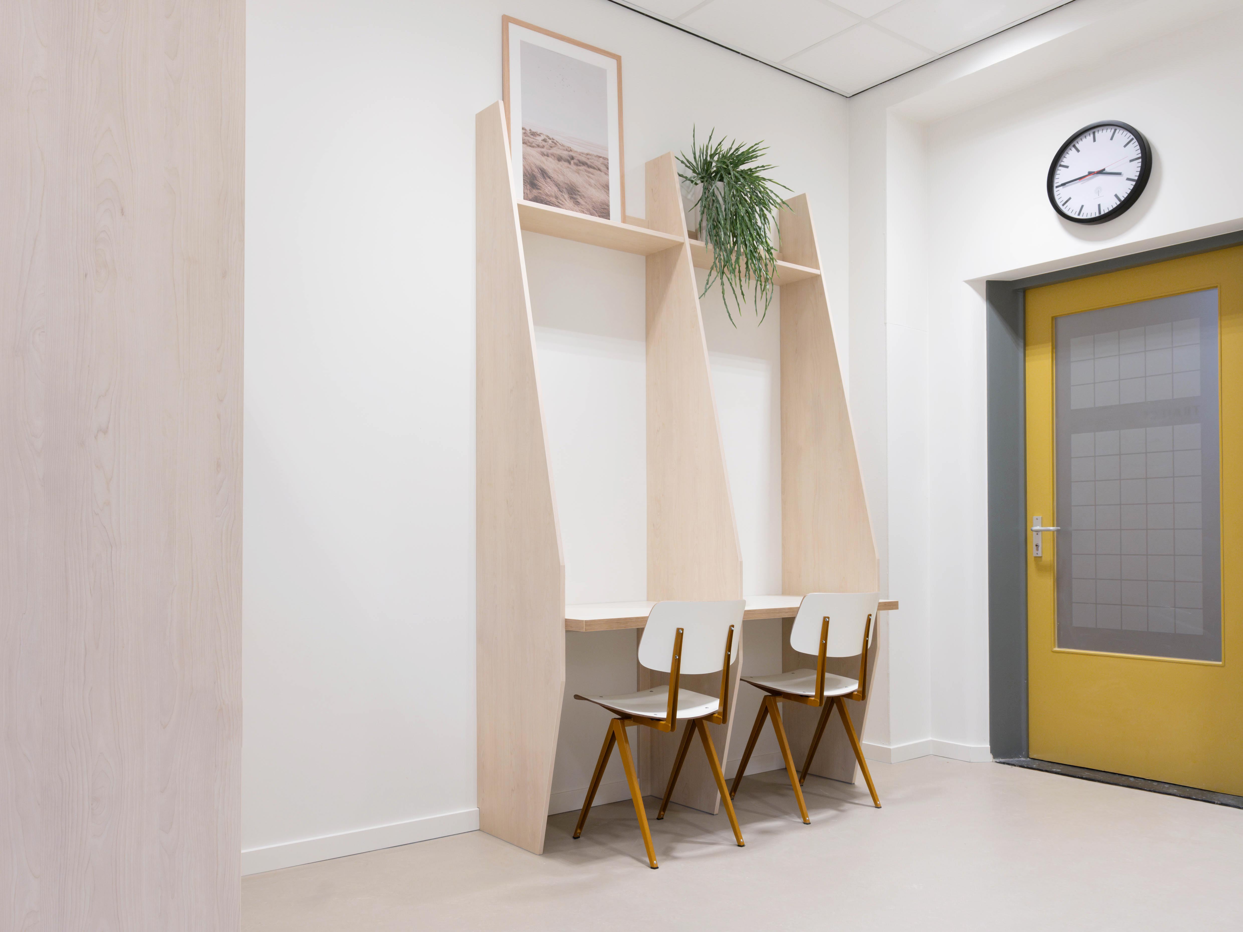 Om te voldoen aan de wens van de leerlingen voor rustige overlegplekken, zijn er vier thematische ruimtes ontworpen, elk geïnspireerd door de vier elementen: aarde, water, lucht en vuur. Deze vierpersoons overlegplekken bieden een rustige en inspirerende omgeving waar kleine groepen zich kunnen concentreren en samenwerken, passend bij elk element. Zo wordt de ruimte niet alleen functioneel, maar ook creatief en thematisch boeiend.