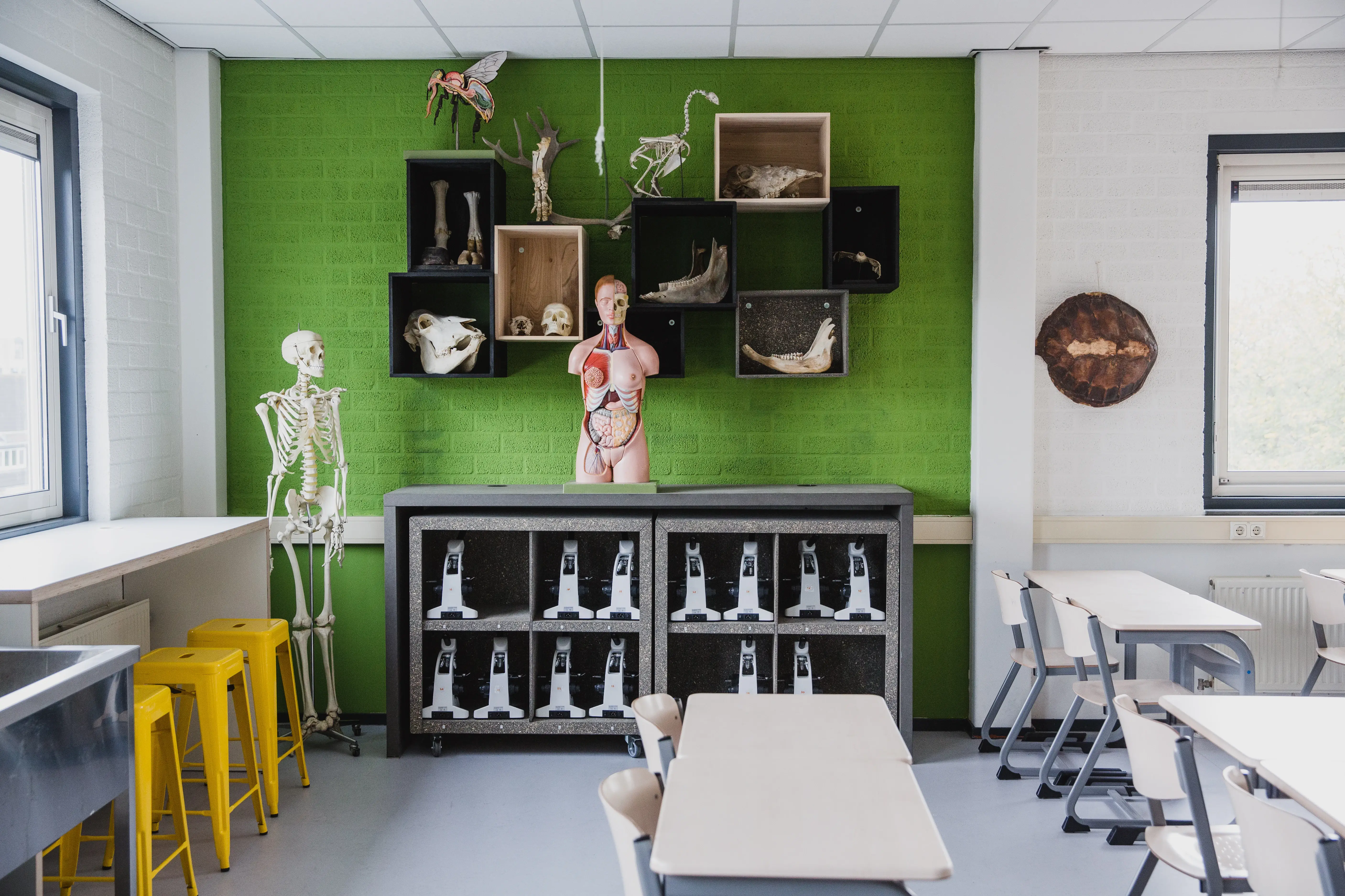 Met robuuste werktafels, moderne apparatuur en een slimme indeling, ondersteunen onze BINASK-lokalen hands-on leren en wetenschappelijk onderzoek.